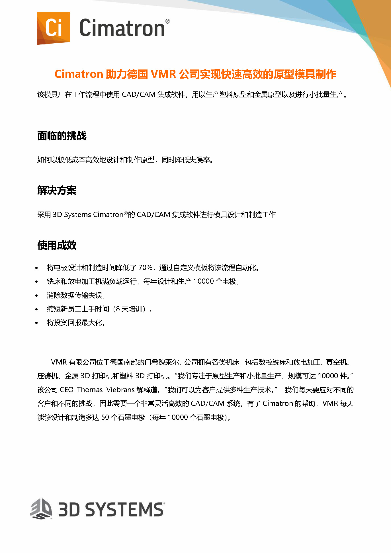 Cimatron助力德國(guó)VMR公司實(shí)現(xiàn)快速高效的原型模具制作