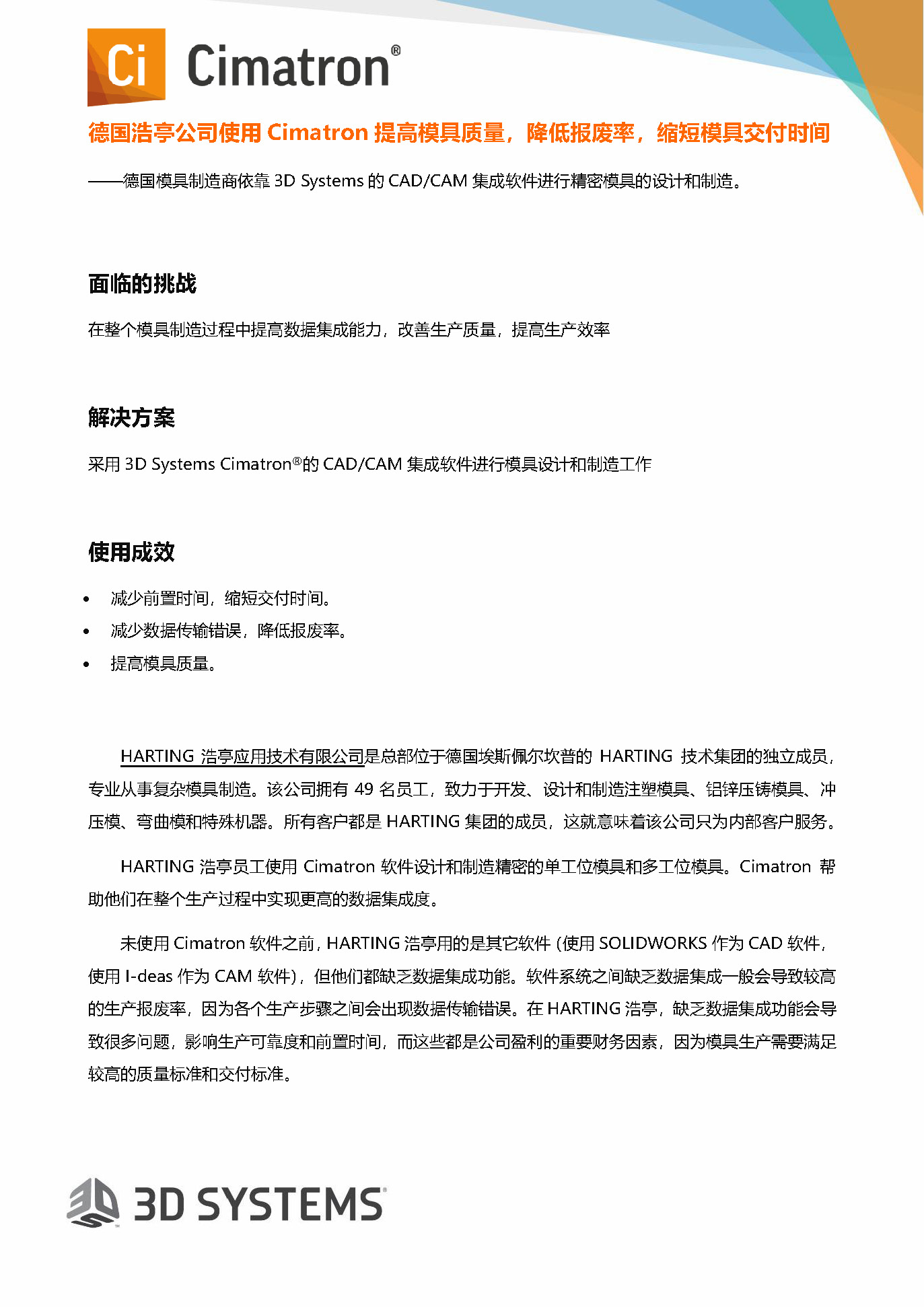 德國浩亭公司使用Cimatron提高模具質量,降低報廢率,縮短模具交付時間