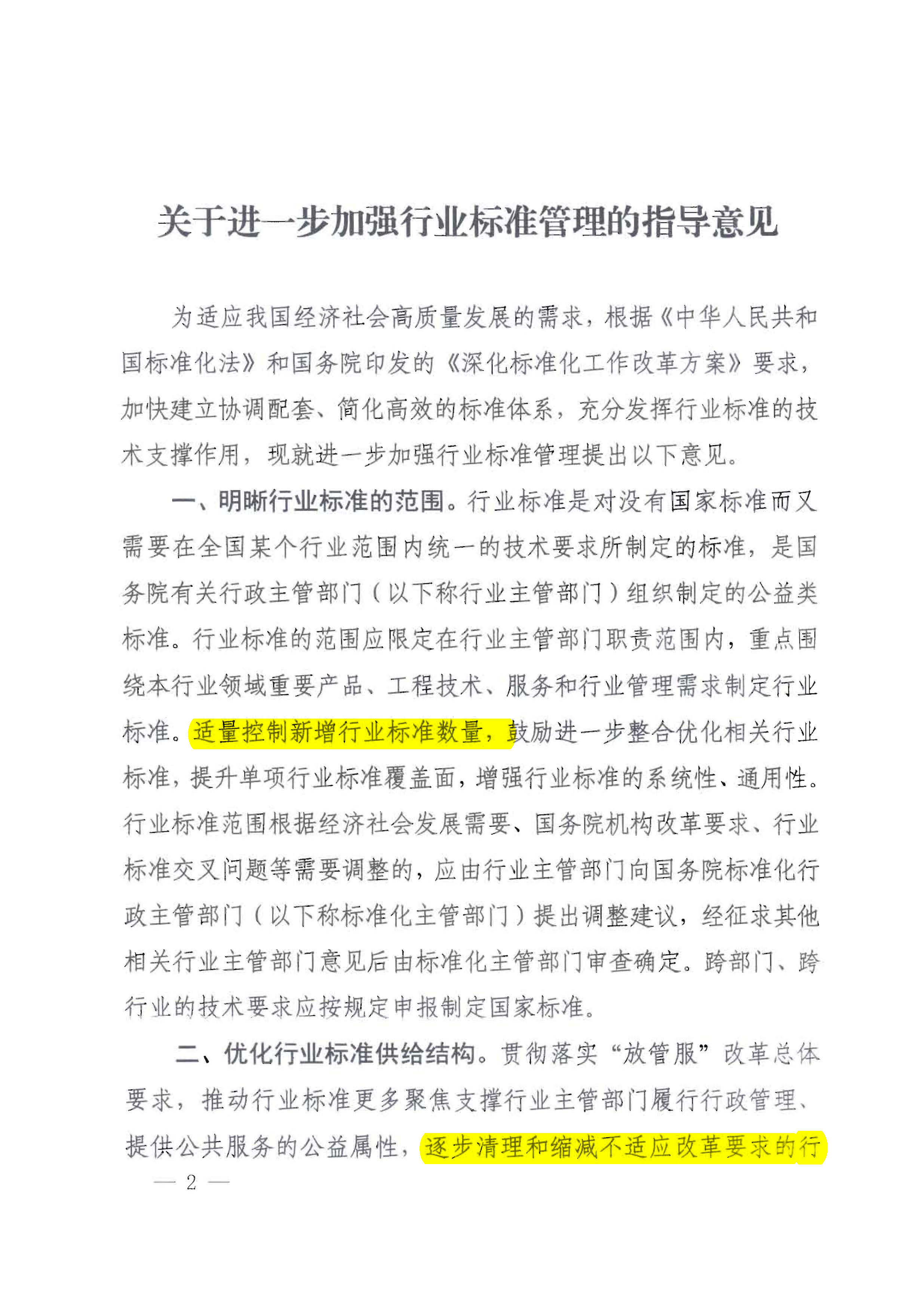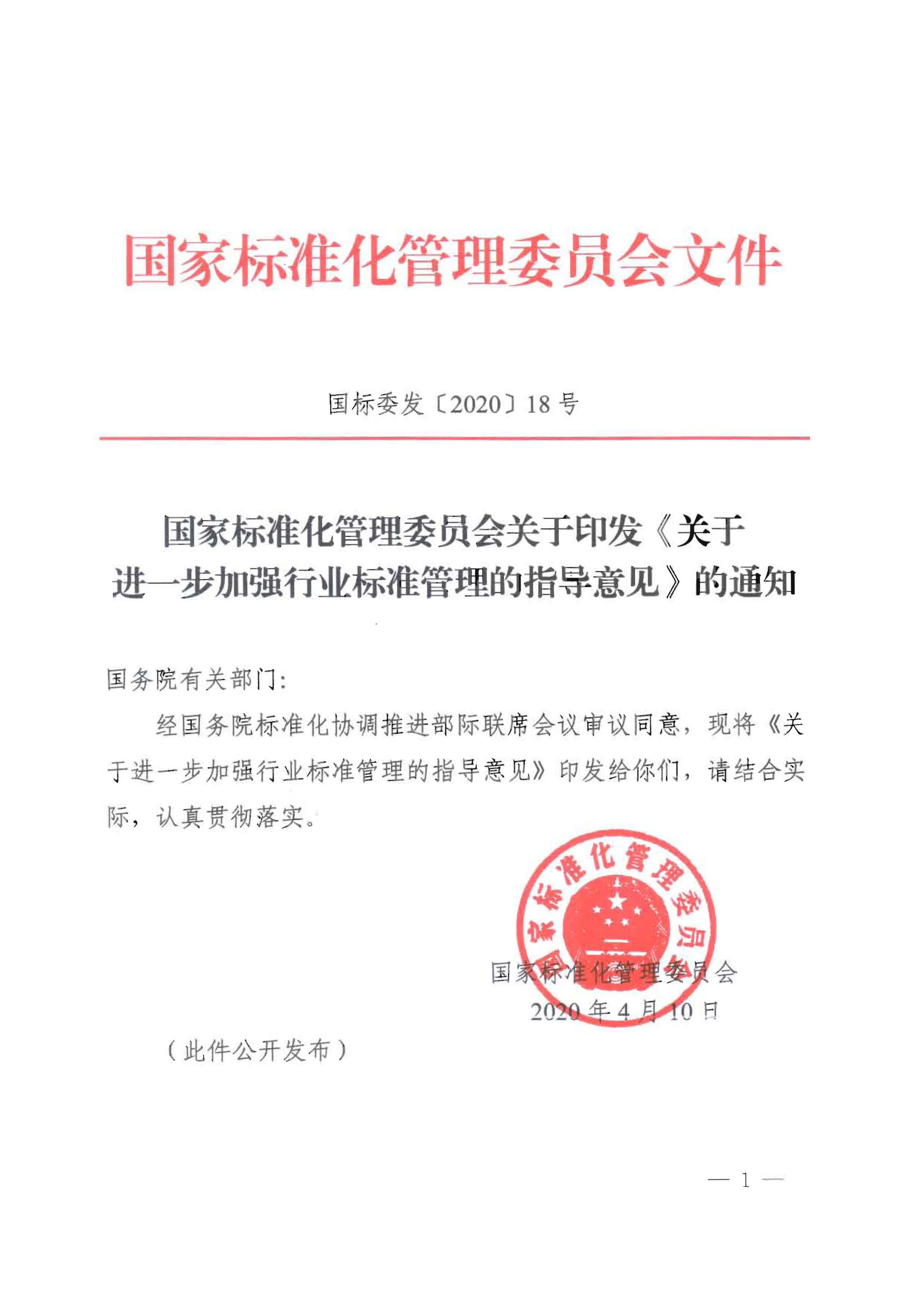 國家標準化管理委員會關于印發《關于進一步加強行業標準管理的指導意見》的通知