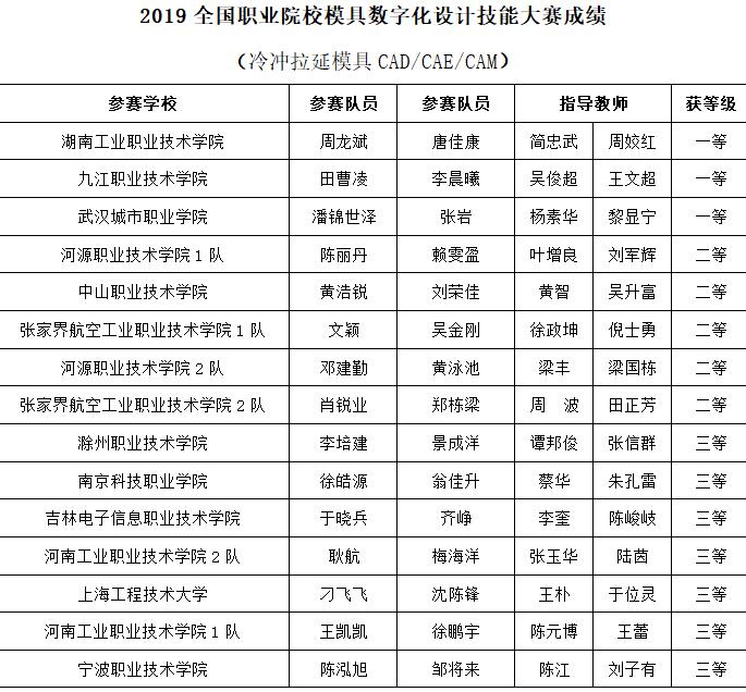2019全國職業(yè)院校模具數(shù)字化設(shè)計(jì)技能大賽成績