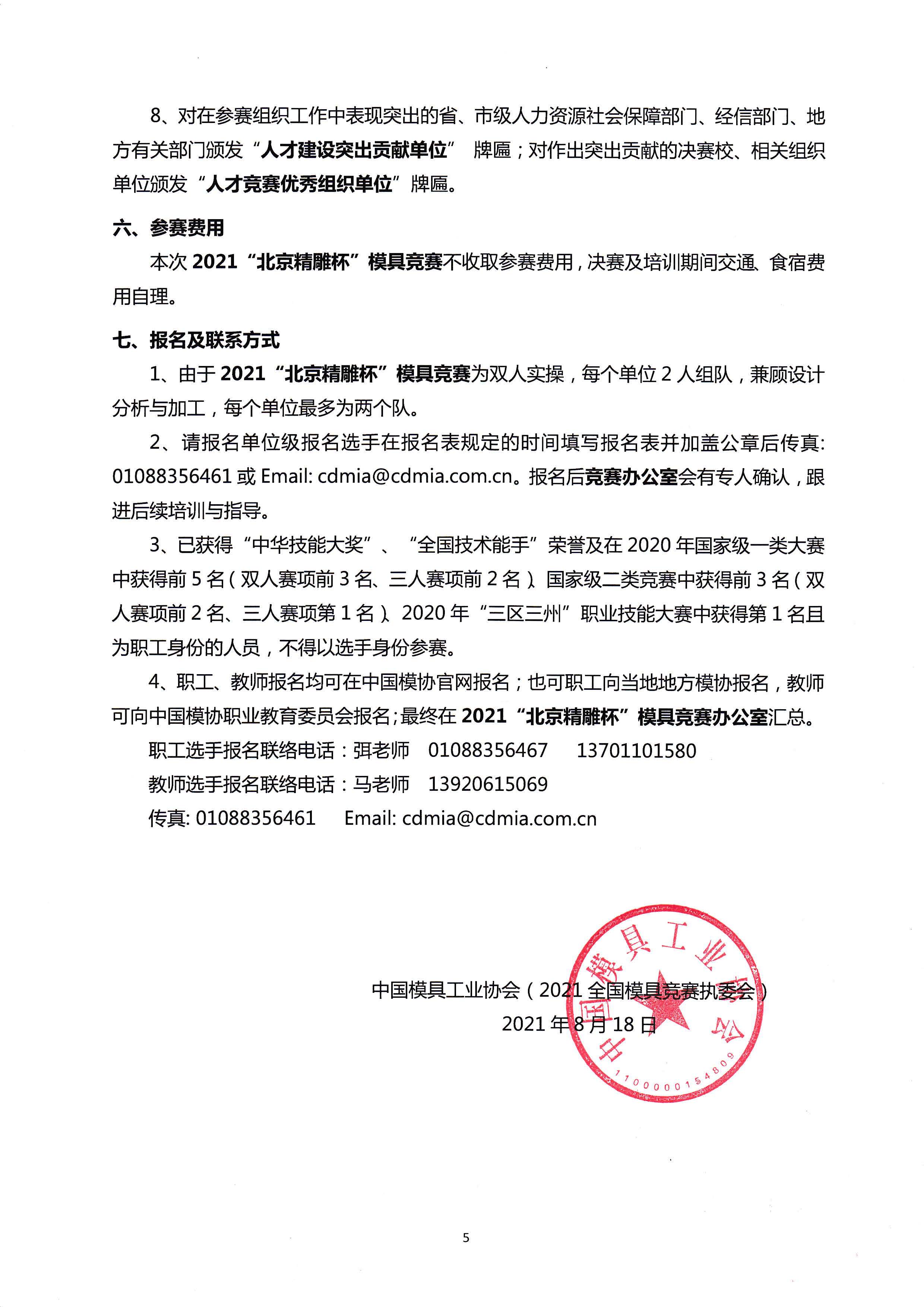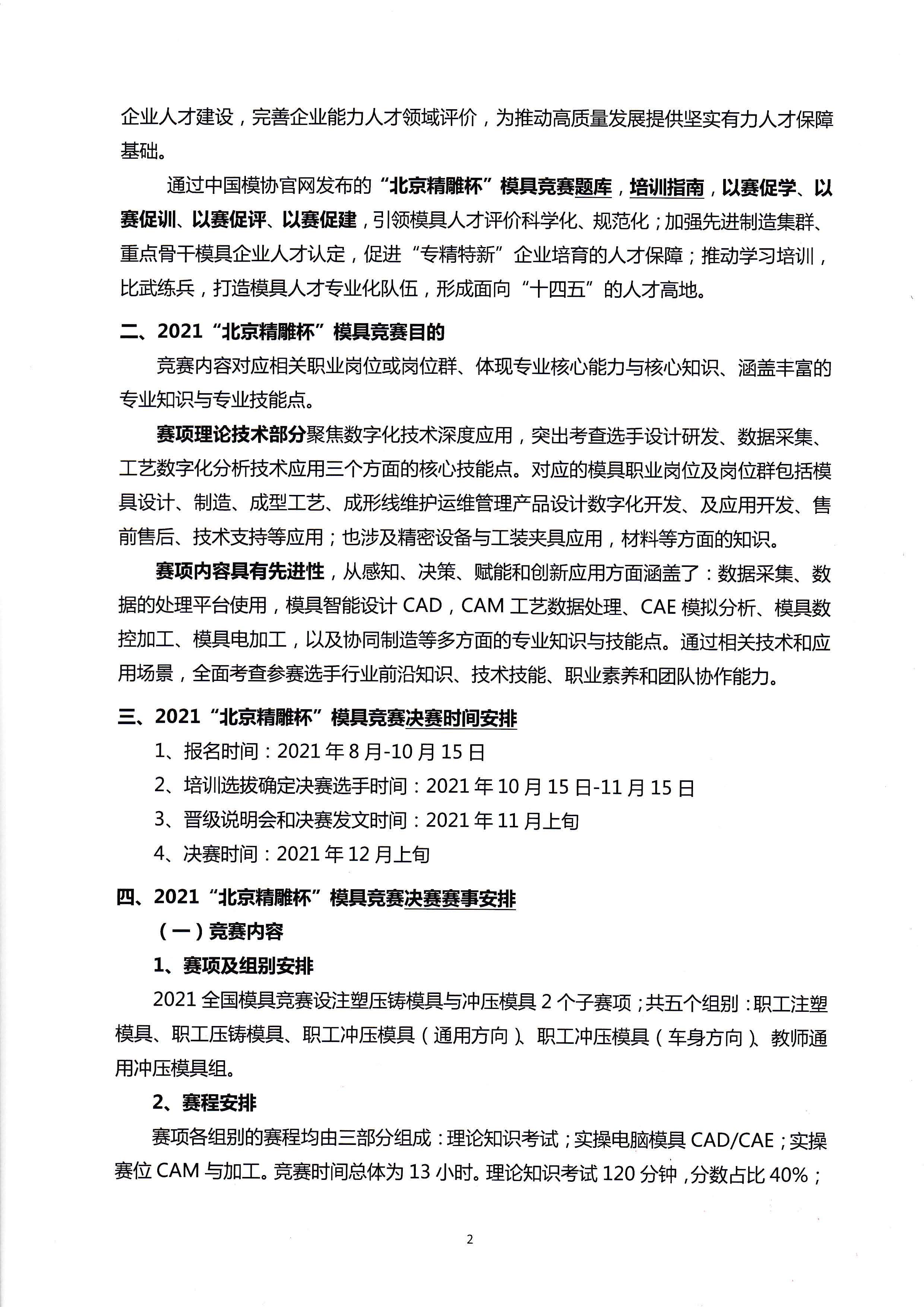 2021年人社部全國行業(yè)職業(yè)技能競賽——第十九屆全國機械行業(yè)職業(yè)技能競賽(“北京精雕杯”模具競賽)報名通知
